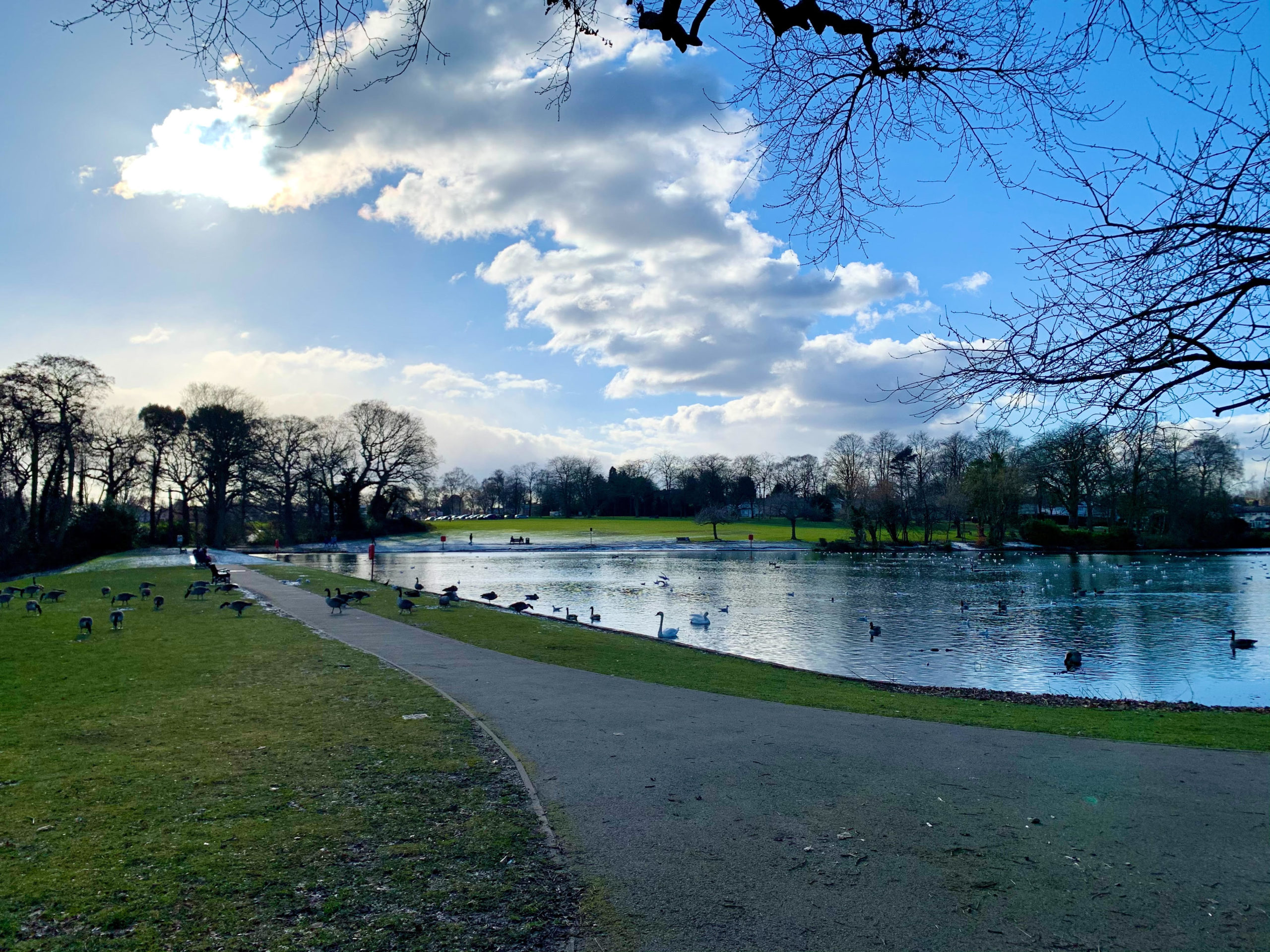 Swanshurst Park was established in 1922 by the City of Birmingham on former farm land. The park contains Moseley New Pool, created when an earth dam was built across the valley of a tiny brook in c.1759 by a Henry Giles. Its original purpose was as a fish pond. People can still fish in the pool but its main draw is the large number of wild birds that inhabit the water. There is also a very pleasant walk around its perimeter.