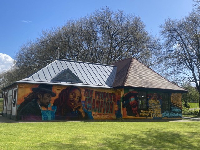 Handsworth’s rich social history and relevance in art and music is tangible in so many places in and around the park. Most obviously, the beautiful tribute to local poet and activist Benjamin Zephaniah on the outside of the Sons of Rest building (only fitting that the food we serve in there on Wednesdays is vegan, like he was!). The many sculptures and installations on the Handsworth Park Art Trail reference local and national history and the visible remnants of the park’s Victorian past, like the lodge house and St Mary’s church (often called ‘the Cathedral of the Industrial Revolution housing the remains of place for James Watt, Matthew Boulton, and William Murdoch) remind us that so many people loved and enjoyed the park before us.